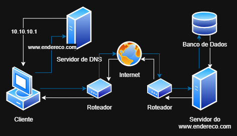 Um protocolo é um sistema de regras que define como o dado trafega dentro ou entre computadores. O protocolo TCP/IP é dividido em diversas camadas, com diferentes protocolos em cada uma. O TCP (ou Transmission Control Protocol) faz parte da camada de transporte, e o IP (ou Internet Protocol) da camada de rede. O protocolo TCP/IP basicamente dita regras para que duas máquinas se comuniquem e define cuidadosamente como as informações se movimentam de remetente para receptor. O protocolo HTTP (ou Hypertext Transfer Protocol), também criado por Tim Berners-Lee, é um protocolo da camada de aplicação do TCP/IP. Como o nome sugere, é um protocolo para transferência de hipertextos, e foi criado em 1990. Outro termo importante ao falar do protocolo HTTP, é o DNS (ou Domain Name System), que é um sistema de endereçamento de domínios. O DNS traduz o endereço web que você digita (o domínio) para o respectivo endereço IP real do servidor, permitindo que o protocolo TCP/IP estabeleça a conexão e permita a troca de dados HTTP.